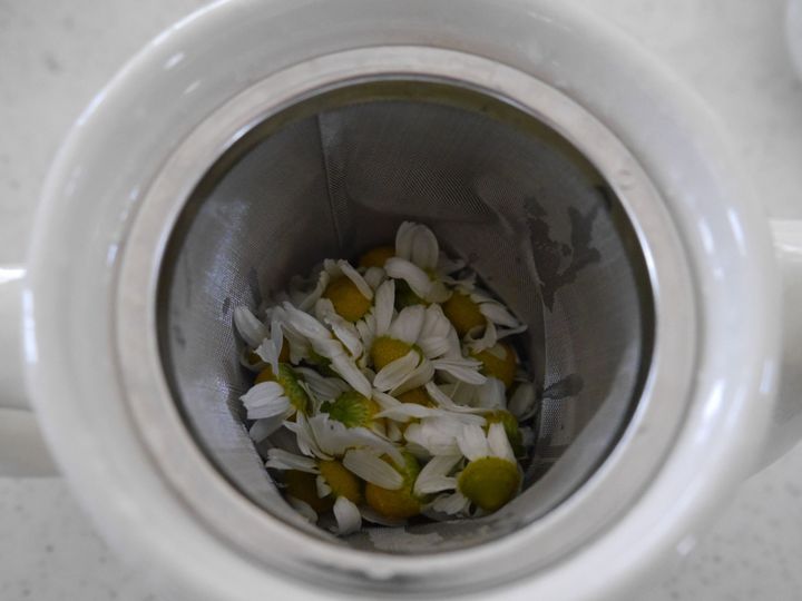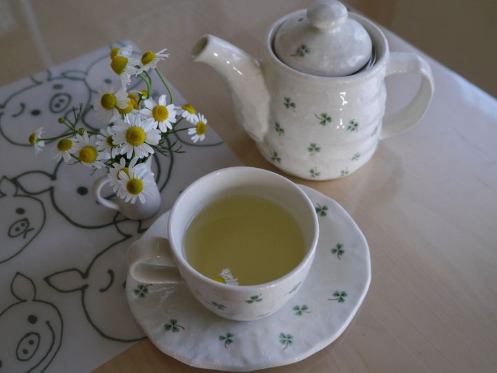 この花が咲く季節だけの楽しみ方!花の部分だけ摘んできて軽く汚れを落とした後、そのまま熱湯でフレッシュカモミールティに!!