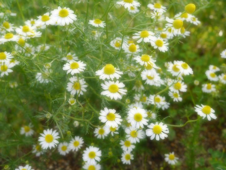 カモミールには大きく分けて2種類あるのですが、我が家で育てているのは「ジャーマンカモミール」です。数年前に一度種をまいたら、どんどんこぼれ種から増えていき…今では5月のこの時期になると、花壇や畑を埋め尽くして咲き誇っています!ほとんどほったらかしでこんなに育つので、初心者でも育てやすいのではないでしょうか(^▽^)