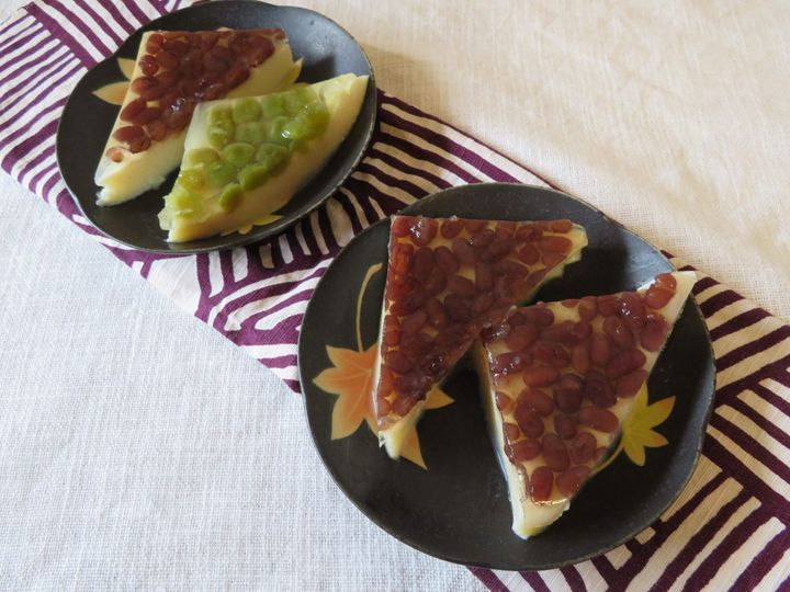 小豆の甘納豆だけでなく、エンドウ豆の甘納豆も使うと色鮮やかですよ。