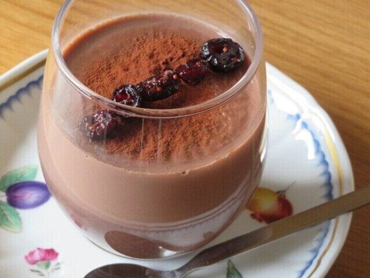豆乳(牛乳でもOK)300ml、ピュアココアをティースプーン4杯分、砂糖15グラム、ゼラチン5グラムでつくりました。