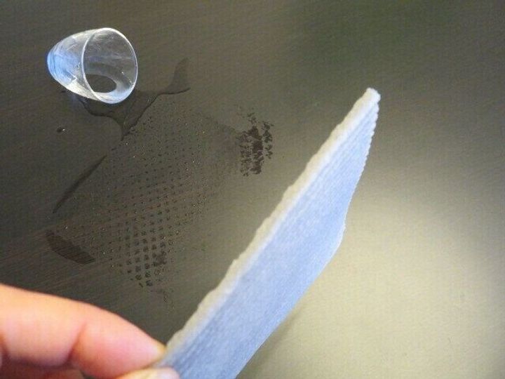 こぼれた部分にかぶせるように置いてみると、あっという間に水がしみこんでいきました。