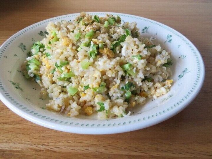 玄米ご飯が最初からパラッとしていて米粒同士があまりくっつかないので、テクニックいらずでパラパラした状態のチャーハンになるのです。