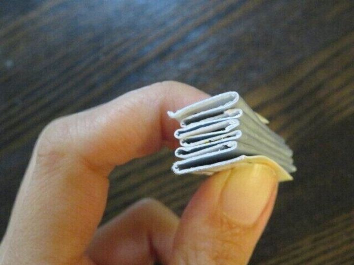 星の場合は、等間隔に印をつけて10回じゃばら状に折り1片を重ねてホチキス止めすれば完成。