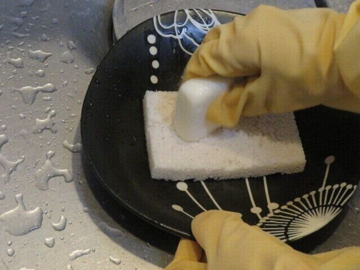 洗剤を使わずに洗えるアクリルたわしやびわこふきんを使う手がありますね。