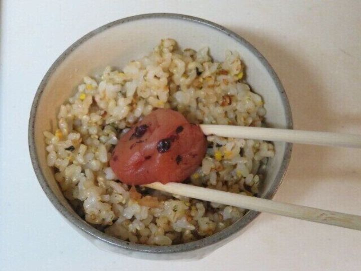 白いご飯に塩をつけただけのおにぎりではさすがに物足りないので、我が家ではご飯にいろいろ混ぜこんだおにぎりをつくることが多いです。