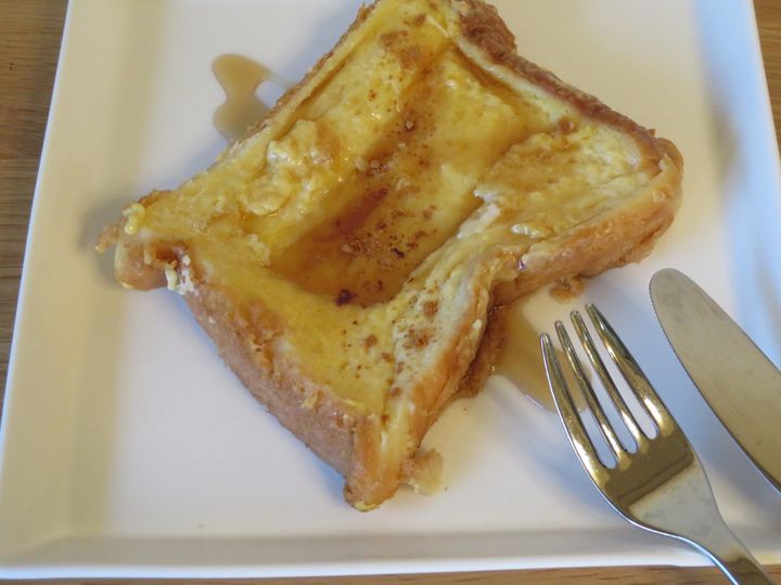 卵と豆乳と砂糖で作った液に一晩ひたして、次の日にバターで焼きました。