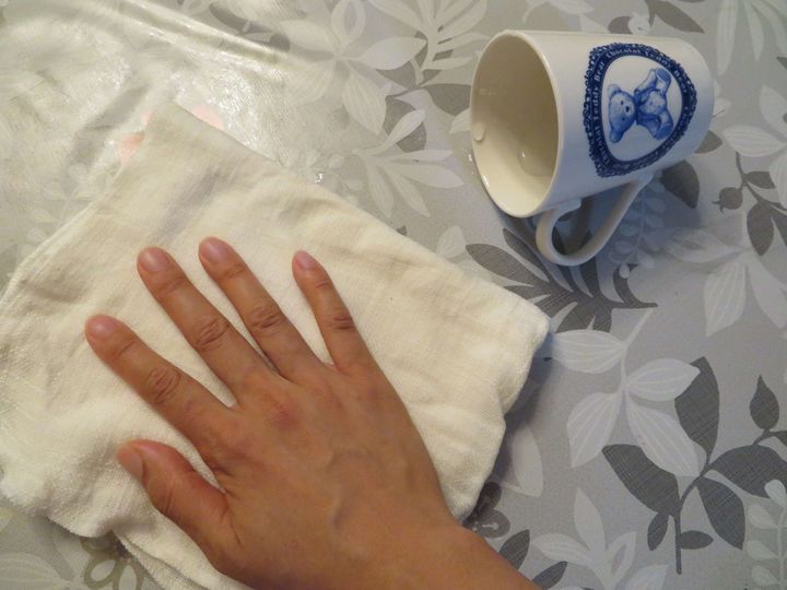 何かをこす時には、清潔なふきんを水で濡らしてから固くしぼったものを使っています。