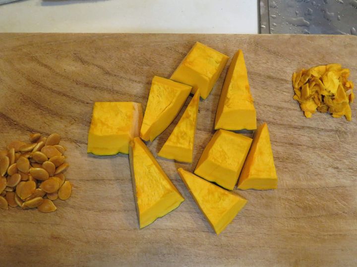 カボチャを調理する時はまず、ワタと種を取り除きます。