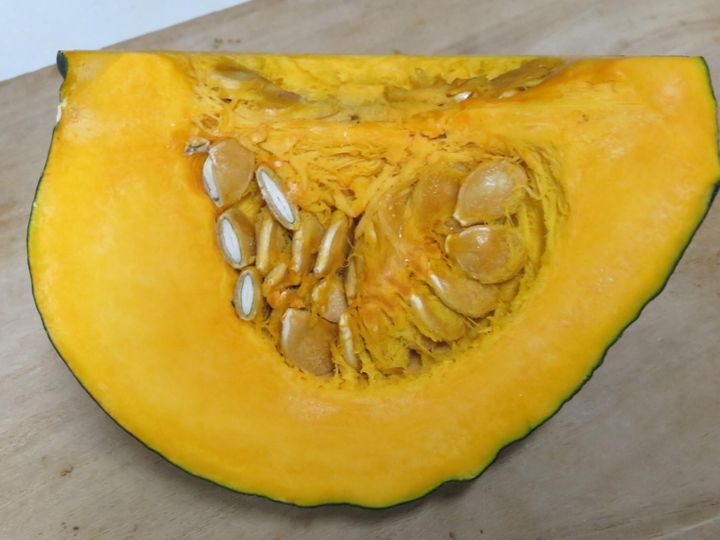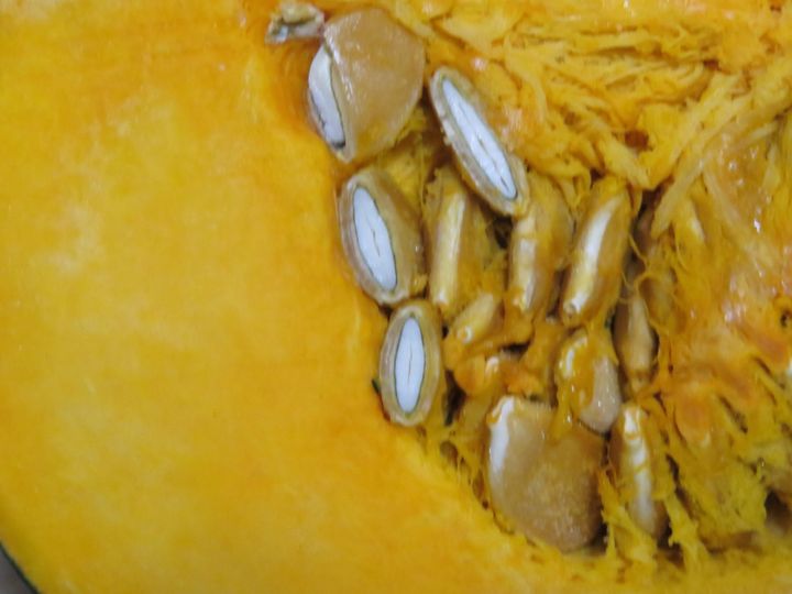 切断されたカボチャは種の断面が一部見えていることが多いので、種の中身があるかどうか確認可能。