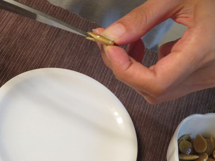種を縦にして側面を前歯で軽くかみ、指で奥から押し出すようにすれば簡単に中身が出てくるからです。