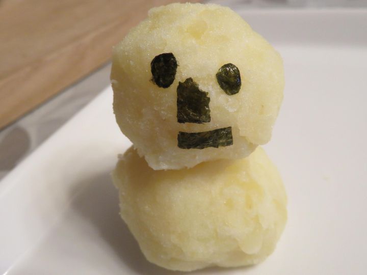 わざと口の位置をずらすなどして不格好にした方が、子ども時代につくった雪だるまらしく見えて可愛い気がします。