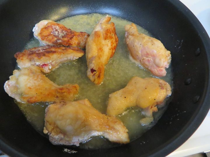 片面を4分、もう片面を3分、最後にフライパンをかたむけて油を集めて側面などを3分かけて揚げました。
