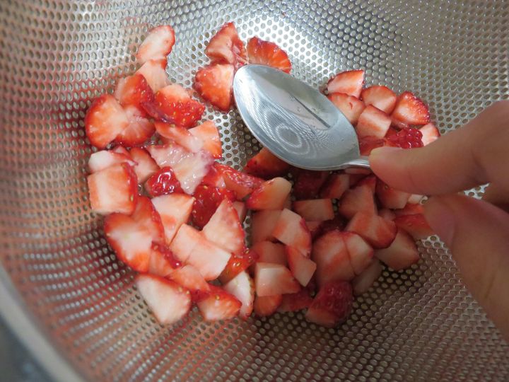 イチゴ果汁を使う場合、水を加える必要はありません。砂糖はお好みで。