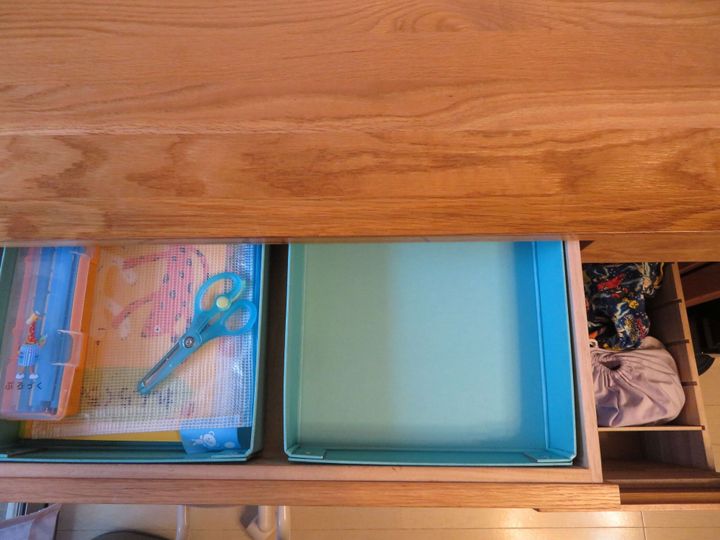 子どもの教科書などは机の上に立てられるので、案外引き出しの中はすいているのです。
