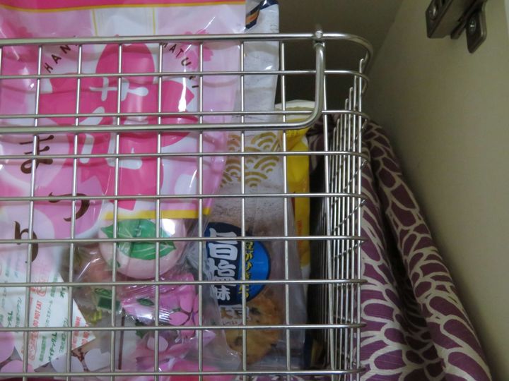 我が家は台所の吊り戸棚の中にお菓子の入った箱を置いて、子どもの手では取れないようにしています。