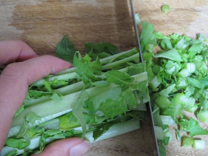 大根の葉っぱを手に入れたら、とりあえず切り落として水洗いし、小口切りにしてしまいましょう。