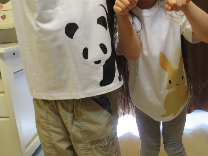 購入する前は、キラキラした飾りやリボンのない素朴なデザインに渋り顔の娘でしたが、いざウサギTシャツを目にすると「早く着たい!」の一言でした。
