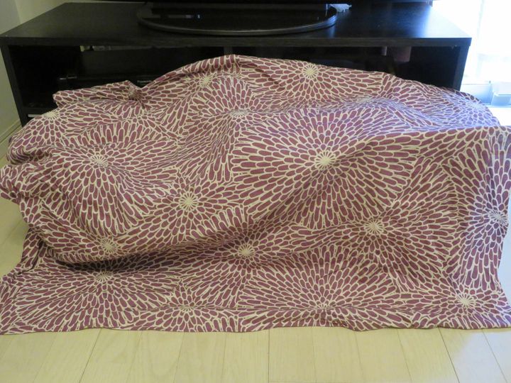 お客さんが帰ったらふろしきを回収するだけで元通りになりますから、物置にしまい込むより労力が少なく子どもにも文句を言われません。