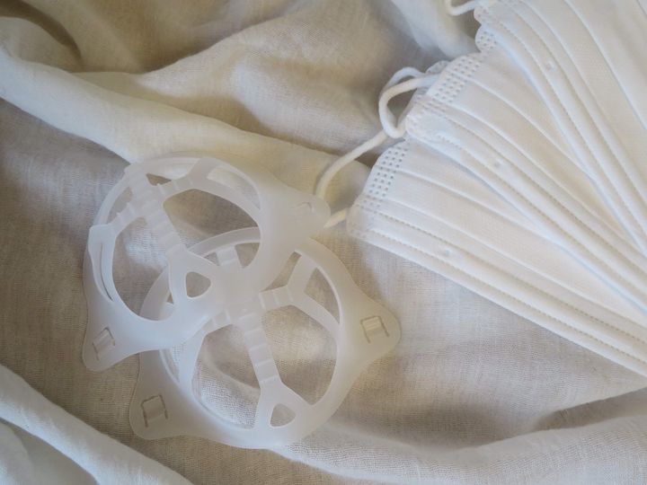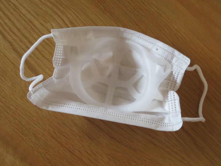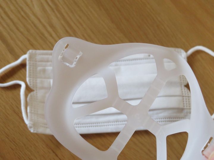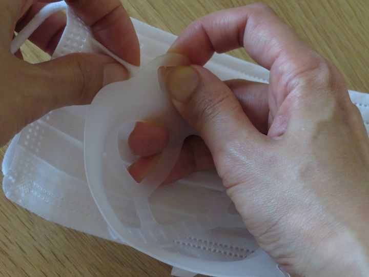 マスクフレームをくっつけた状態でマスクを装着してみると、鼻や口の周りに空間ができたのを感じました。