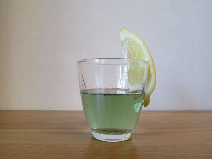 ヒスイ色とでも言うべきでしょうか、よく見るメロンソーダとは違う色合い。