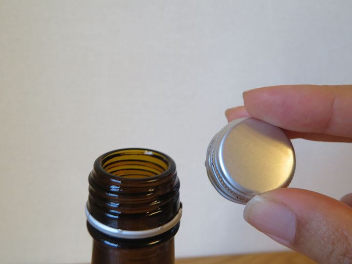 以前はビール瓶の栓と同じタイプの金属の栓がついていましたが、今回見つけたものはスクリューキャップになっていました。
