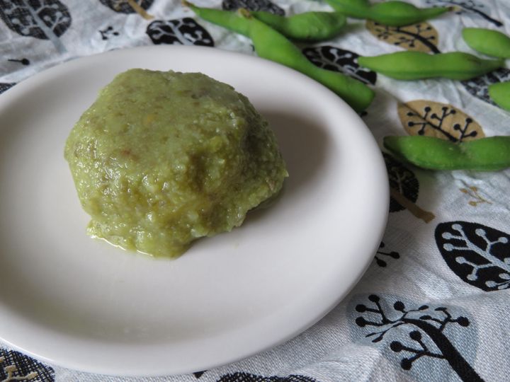 枝豆をつぶしてつくったあんで餅をからめた、素朴な味わいの和菓子です。