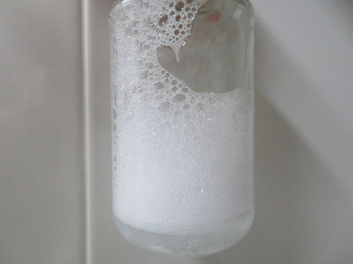 この状態なら、指にとって手に広げ、弱めの水流の中で手をこすり合わせただけできれいに泡立つようになります。