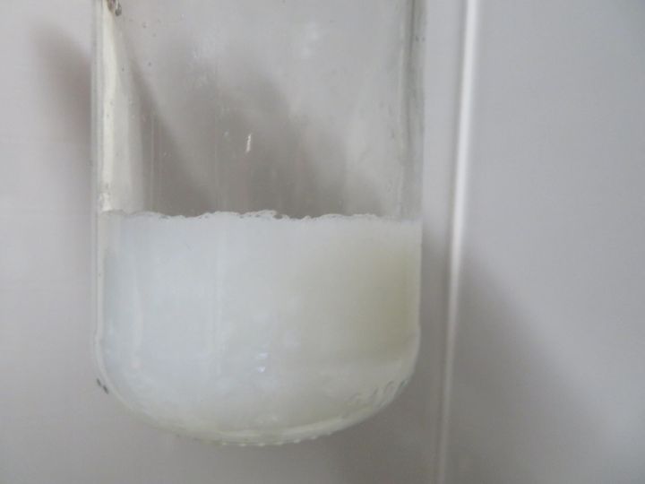 すると、細かくなった石けんが完全にふやけてクリーム状に。