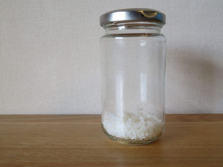 見映えとわかりやすさを考えて細い瓶に入れましたが、実際にやる時は口が広く背の低い瓶がおすすめです。
