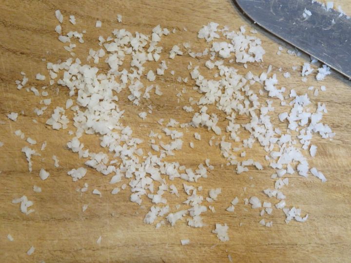 しばらく風通しの良いところにおいて表面のぬめりをなくした後、包丁でみじん切り。