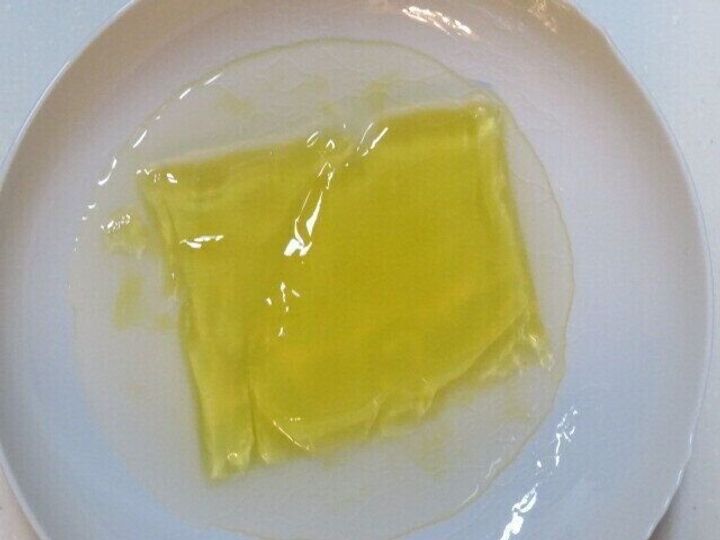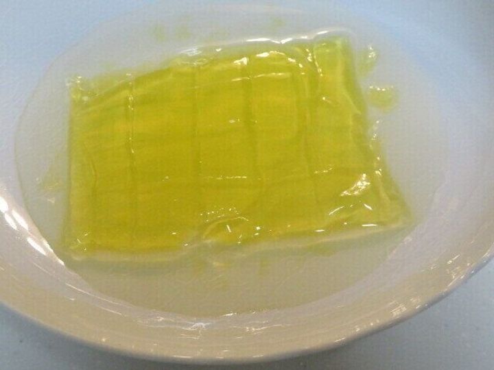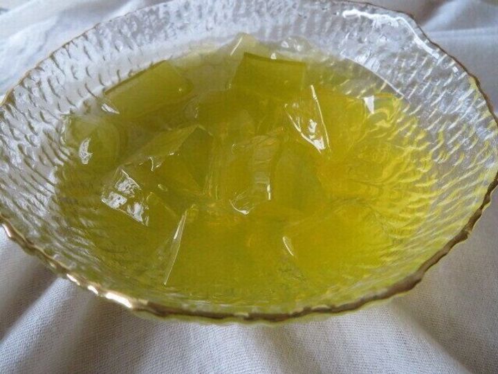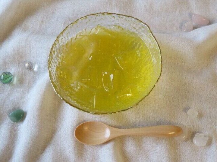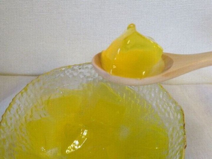 黄色っぽくてかためのゼリーのようです。