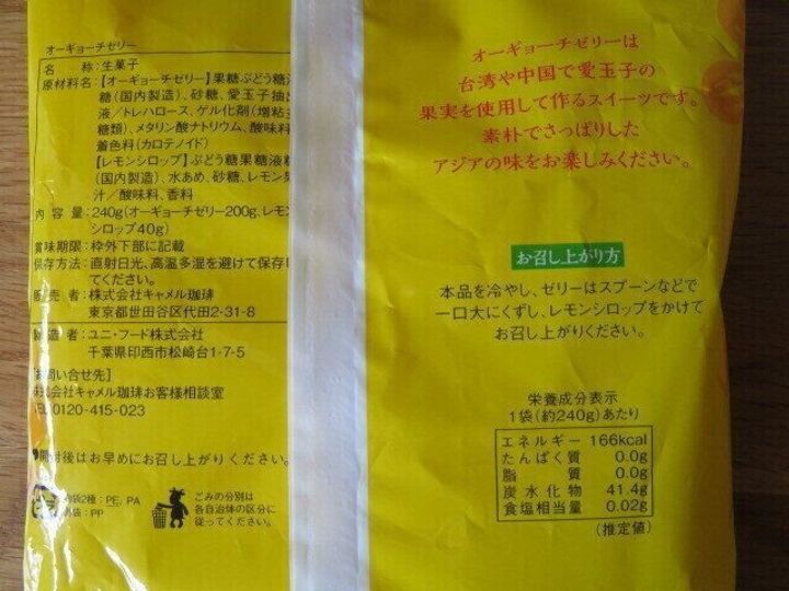 今回紹介するのは、カルディの「オーギョーチゼリー」という商品。