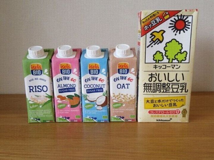 用意したのは、豆乳・オーツミルク・ココナッツミルク・アーモンドミルク・ライスミルクの5種類。