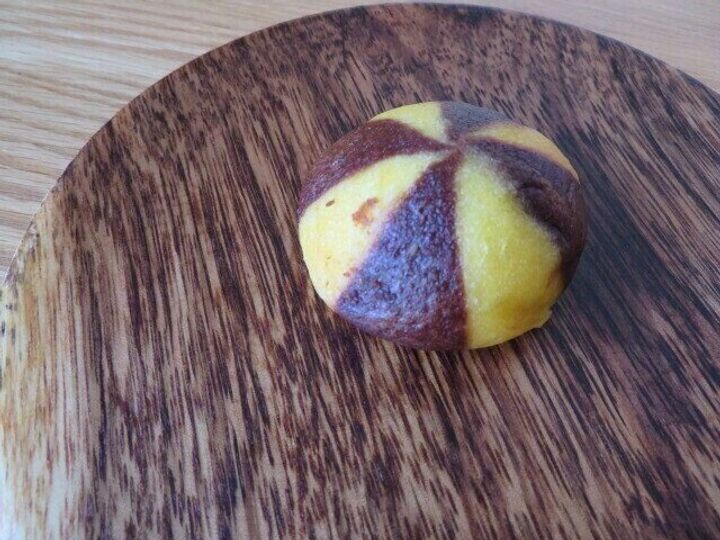皿に盛ると、プレーンのたまごパンの色とチョコレート色が交互に組み合わさっているデザインがキュートです。
