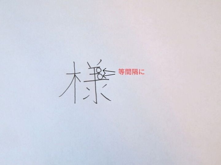 手紙で確実に使う「様」という字なら、つくりの部分に並んでいる3本の線のすき間がほぼ同じになるように気をつけてみて。
