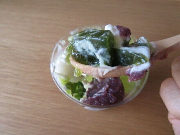 抹茶の苦みはあまりなく、抹茶が苦手な人にも食べやすいさわやかなゼリーでした。