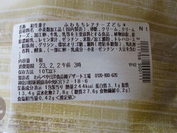 チーズが入っているから高カロリーなのかなと裏を見たところ、熱量244kcalとありました。