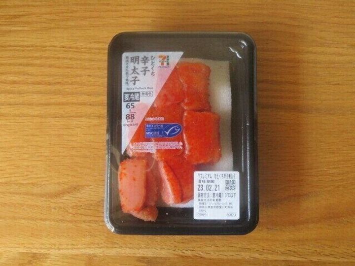 ご飯のおともにぴったりな一口サイズの辛子明太子、税込354円です。