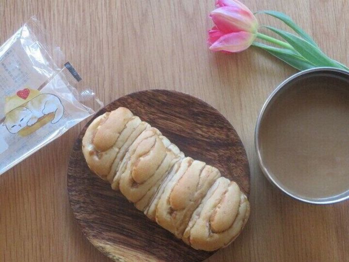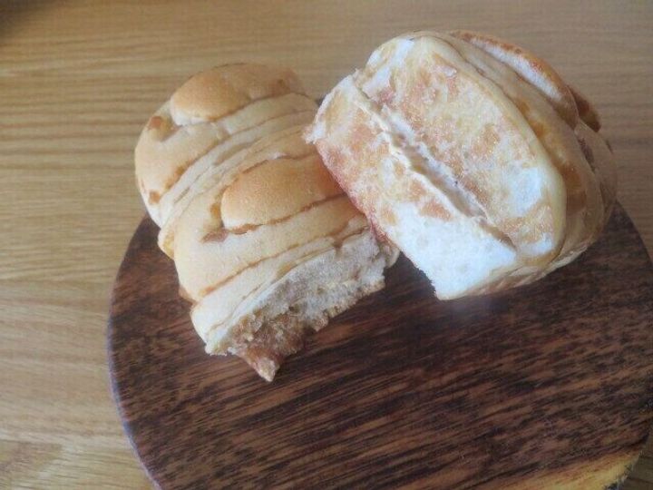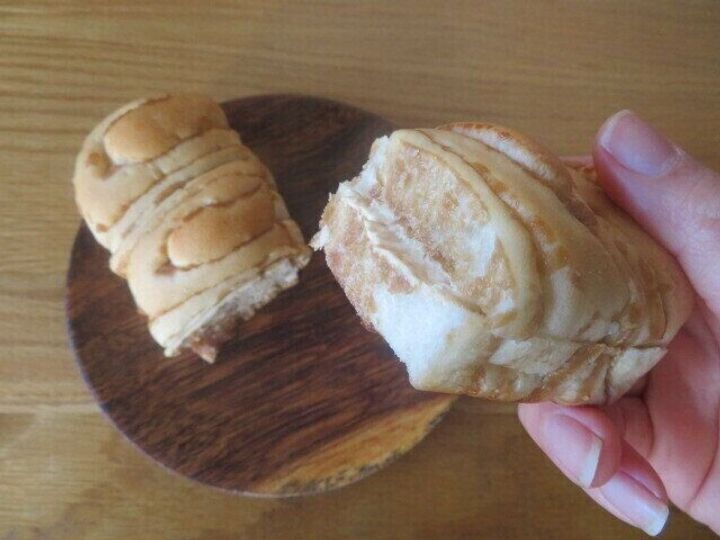 中のキャラメルミルクのクリームが予想以上にたっぷり入っていて、かむたびにパン生地の間からしみ出してきます。
