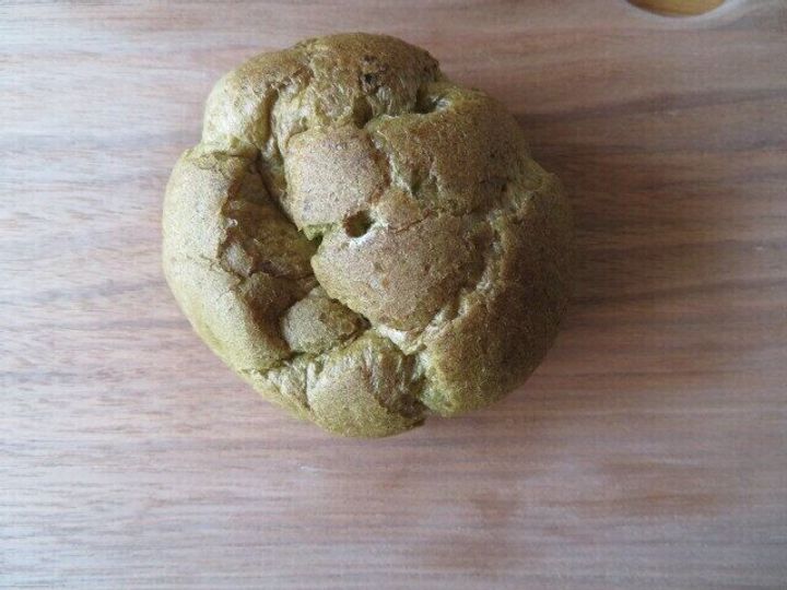 シュー生地にも抹茶が練り込まれているので、かすかに緑色を帯びたうぐいす色をしています。