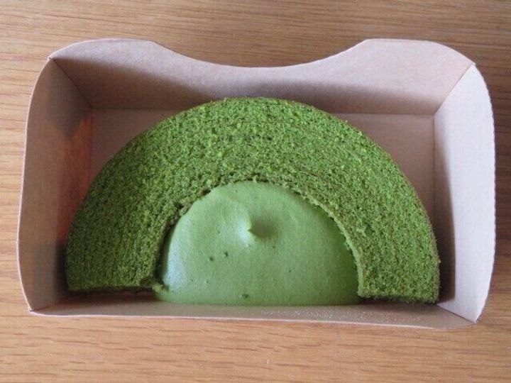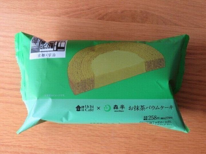 京都の宇治抹茶の老舗「森半」とローソンがコラボしたスイーツの1つ、「お抹茶バウムケーキ」。