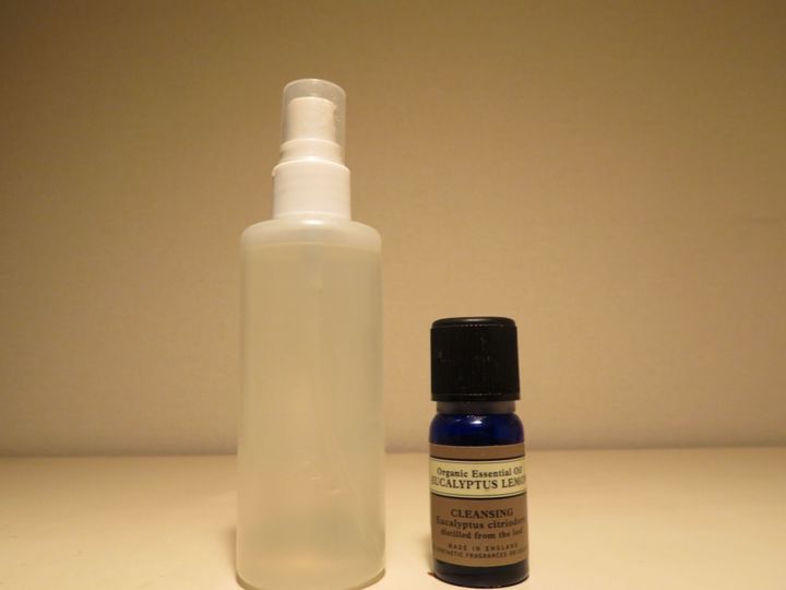 部屋に風を入れたい時は、網戸にレモンユーカリの香りを吹きつけます。
