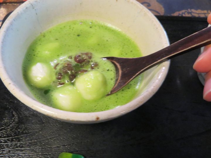 抹茶の中に見え隠れする白玉は、つるんとした舌触りとつきたてのお餅のような柔らかさが最高。