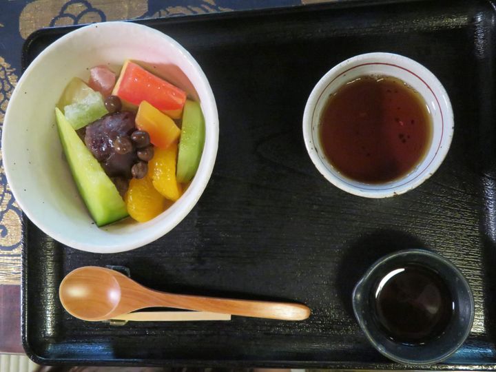 娘が選んだのは、大人気メニューの「あんみつ」。
