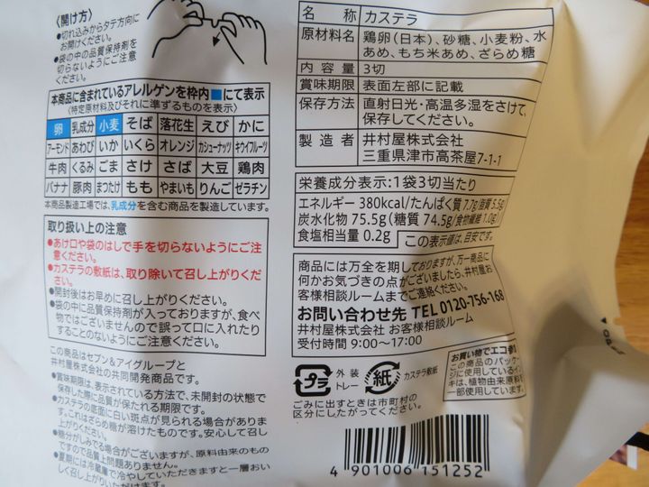 商品名、「カステラ」。なんてひねりがないのでしょう。