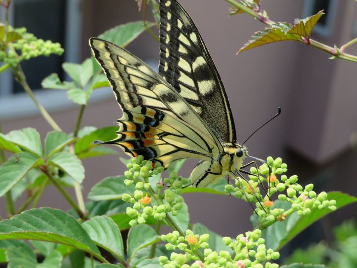 美しいなと思いました。帰宅後図鑑で調べましたが、キアゲハで間違いないようです。ナミアゲハはもう少し白っぽいですからね。