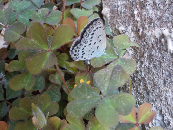 カタバミのそばでひらひらしているシジミチョウを発見。