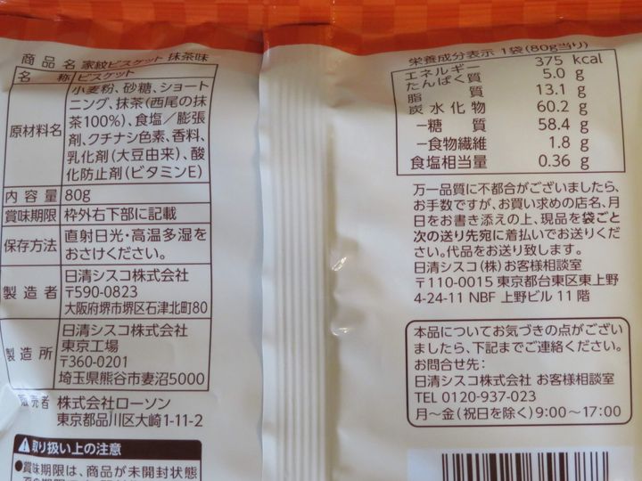 「家紋ビスケット 抹茶味」という商品、税込138円です。