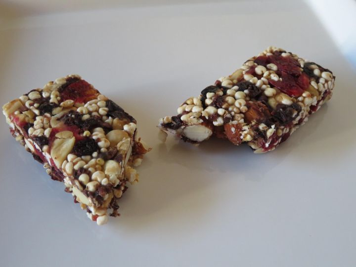 日の光に当てて見ていると、カシスがガーネットのように、クランベリーがルビーのように輝いてとても美しいナッツバーです。