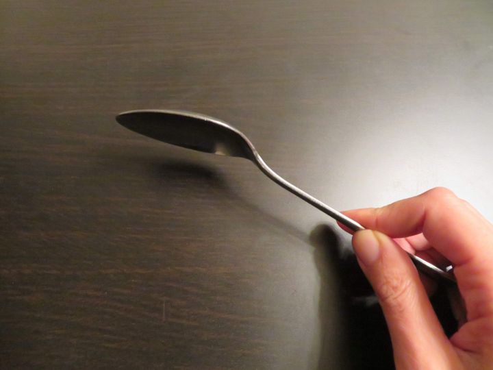 卵を片手に持ち、もう一方の手でスプーンを握り卵の殻をたたいてみます。